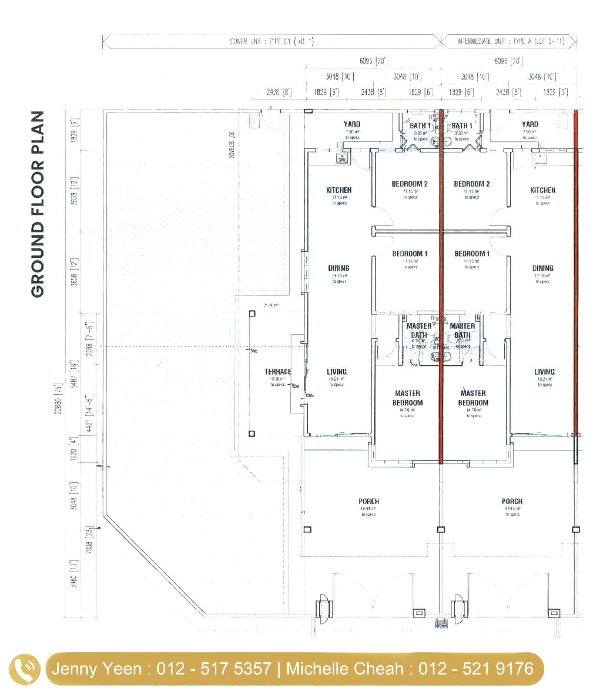 9. Sanitari : 1 no. Sinki Dapur, 2 no. Basin Cuci Tangan, 2 no. Tandas Duduk, 2 no. Pancuran Mandi