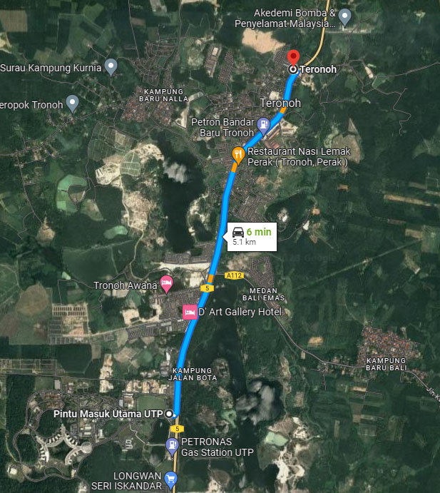- 6 minutes (5.1 KM) to UTP (University Technology Petronas)